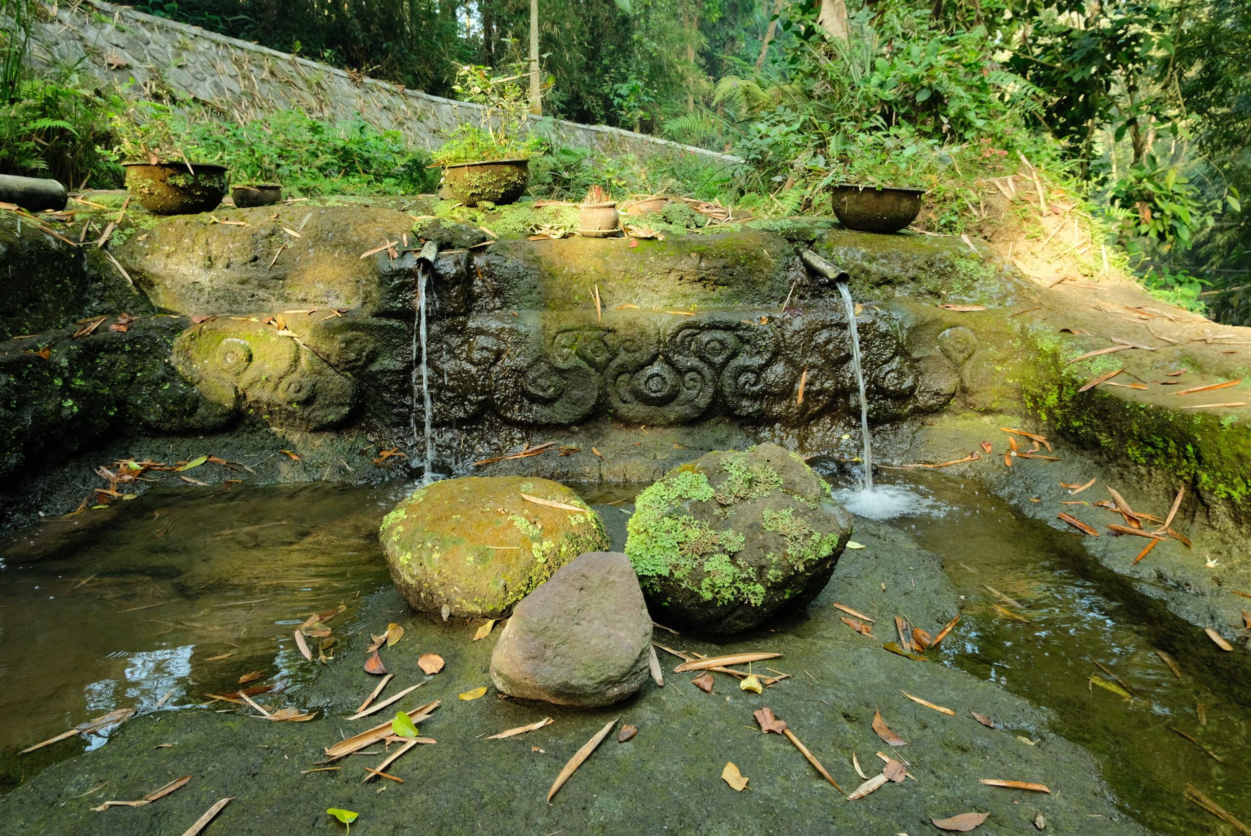 • Kehadiran lumut dan aliran air menambah kesan alami sekaligus sakral.